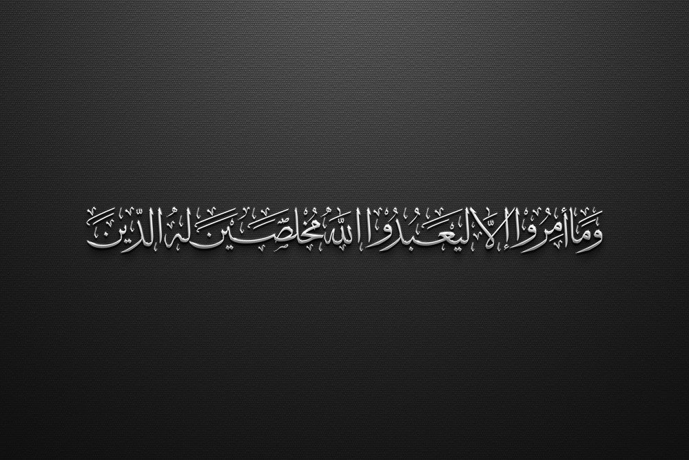 Experience the timeless beauty of Islamic scripture through this Arabic calligraphy artwork of Surah Al-Bayyinah Ayat 5, designed in the majestic Thuluth style. Known for its sweeping curves and artistic elegance, Thuluth brings this verse to life with a spiritual and visual depth perfect for any sacred or decorative setting.