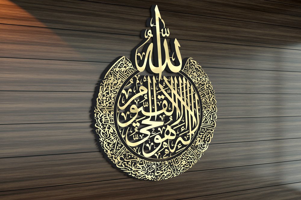 Ayatul Kursi (Surah Al-Baqarah, verse 255) is revered as one of the most protective and spiritually uplifting verses in the Quran. It speaks of Allah’s sovereignty, knowledge, and authority, making it a popular choice for display in homes, offices, masjids, and as meaningful gifts.