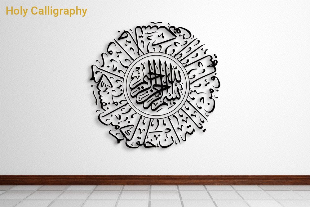 Written in classical Arabic script, the verse is gracefully composed into a symmetrical circular form, symbolizing unity, balance, and harmony. Its artistic structure enhances both the spiritual and visual appeal, making it a timeless addition to any Islamic setting.
